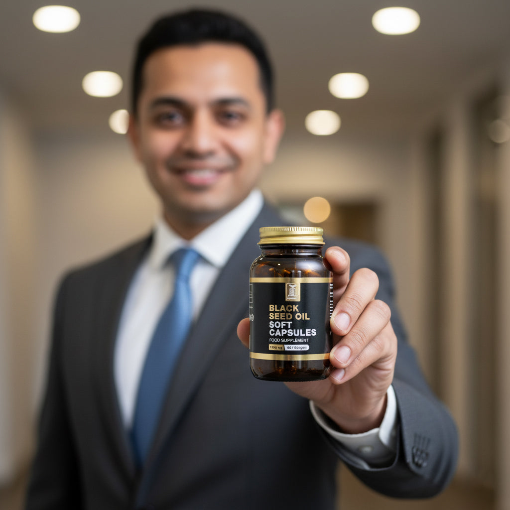 Unlock the ancient secret of wellness with our premium Black Seed Oil Capsules, made from Nigella Sativa — known for centuries as the “Seed of Blessing.”